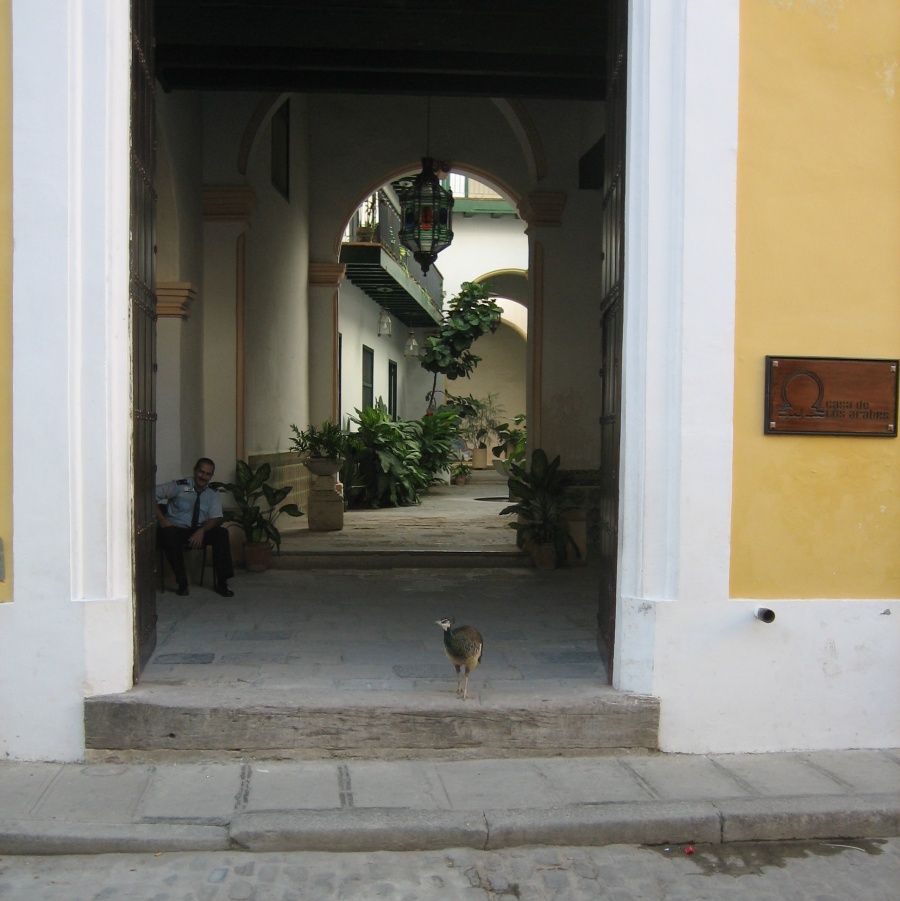 Casa de los Arabes mit Pfau, der dort immer anzutreffen ist.