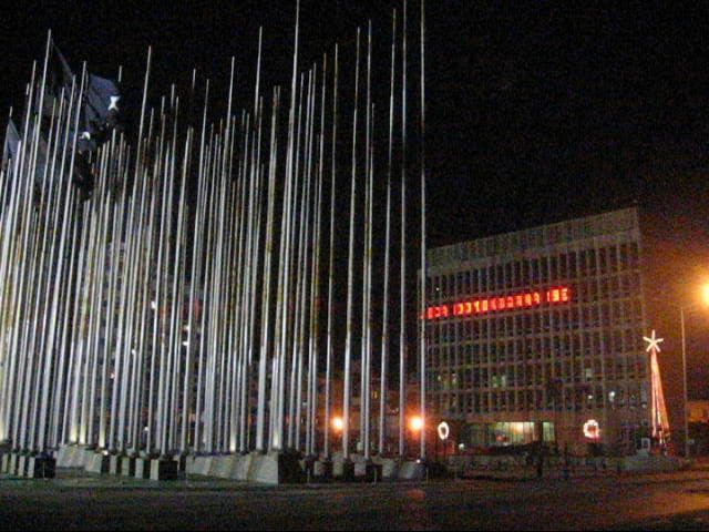 Flaggenmastenwald am Plaza Tribuna Antiimperialista (Abteilung für US-Angelegenheiten)